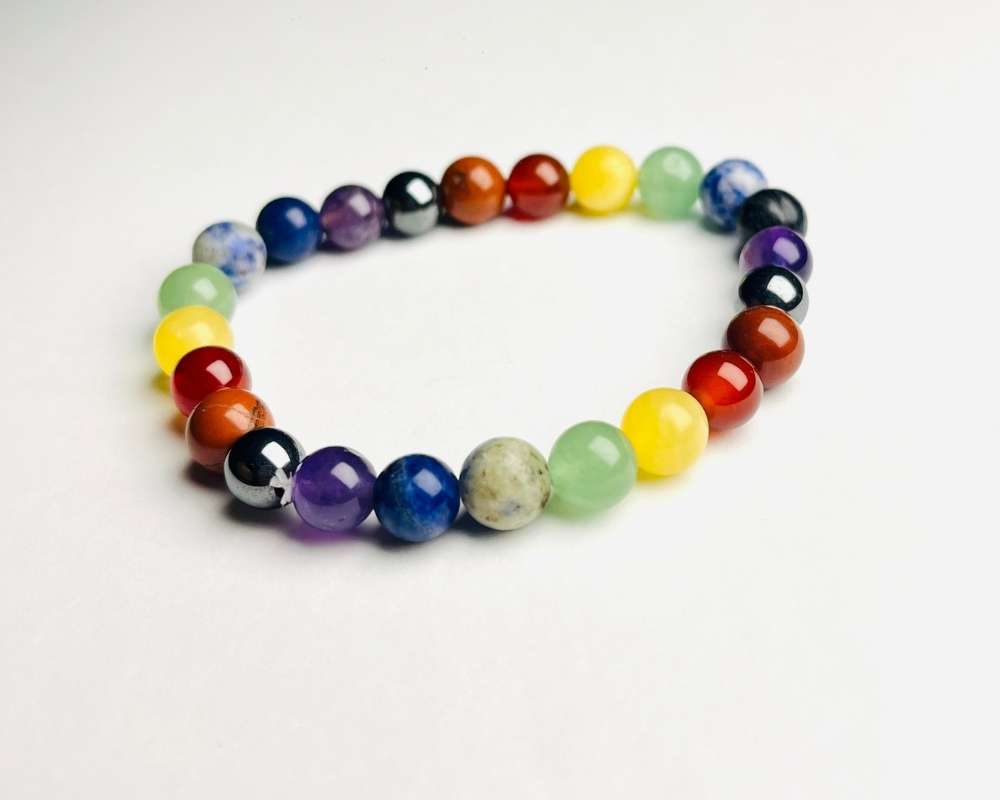 The vibrant spectrum of the 7 Chakra stones creates a colorful and meaningful accessory, blending spirituality with style—ideal for everyday wear or as a thoughtful, symbolic gift.